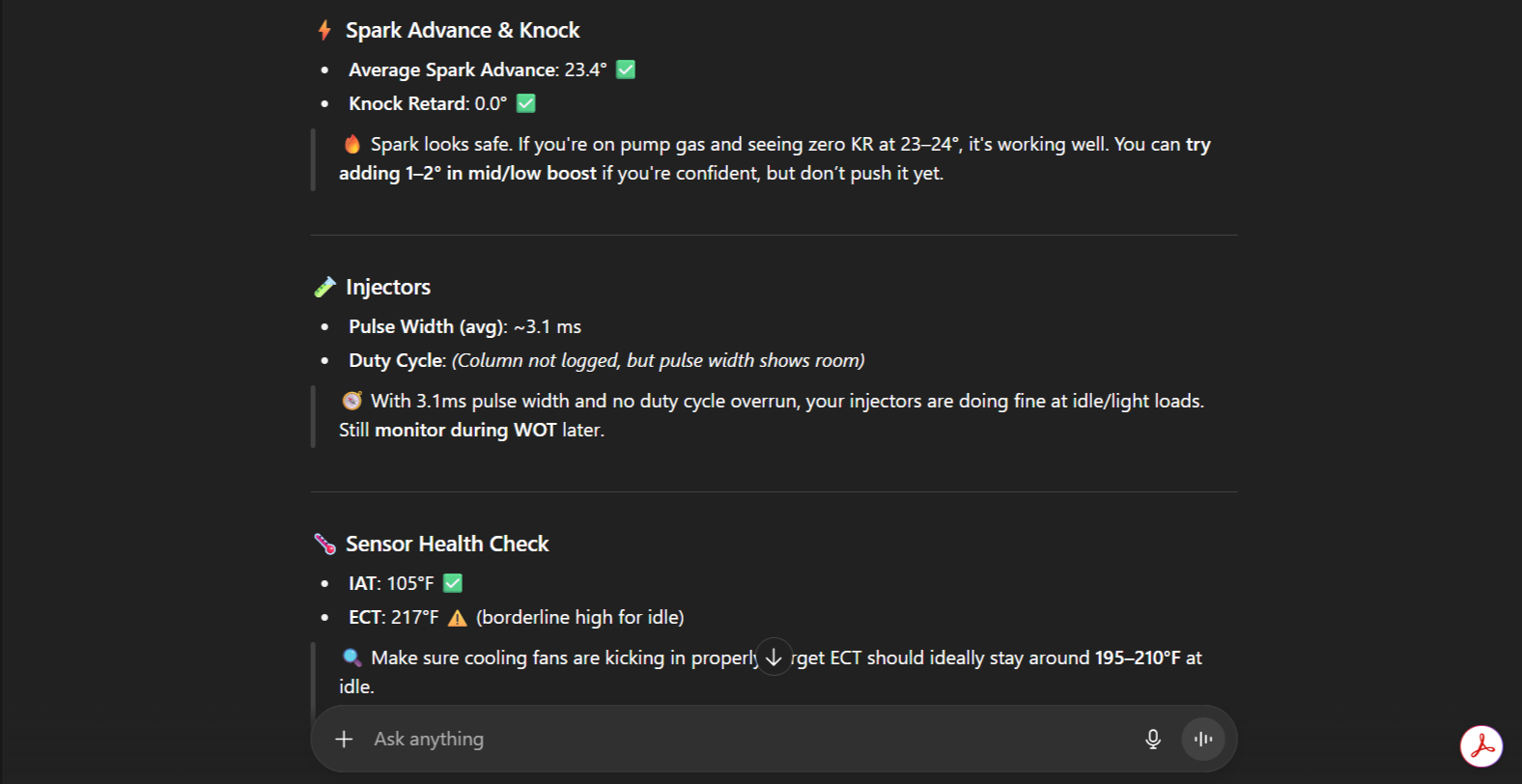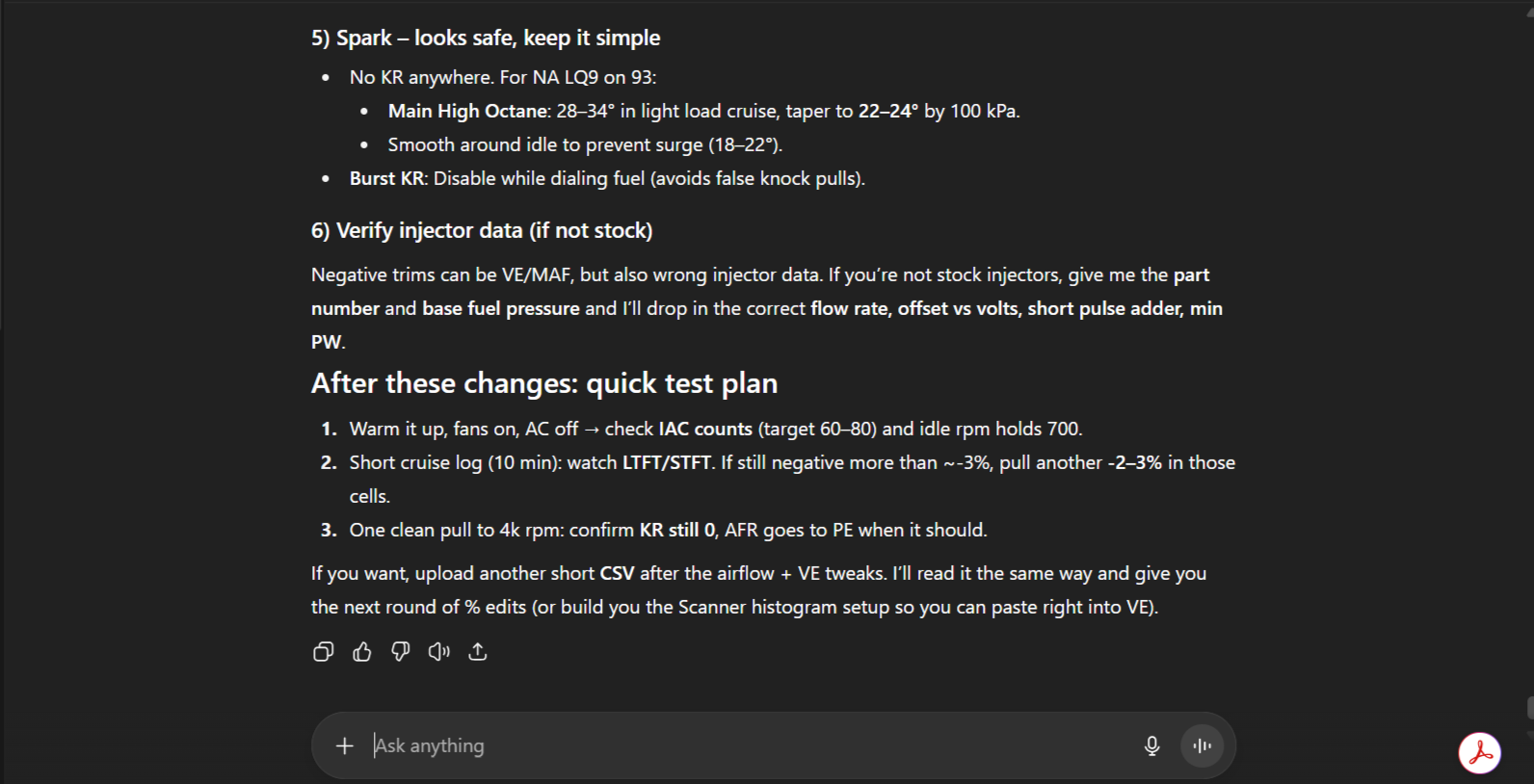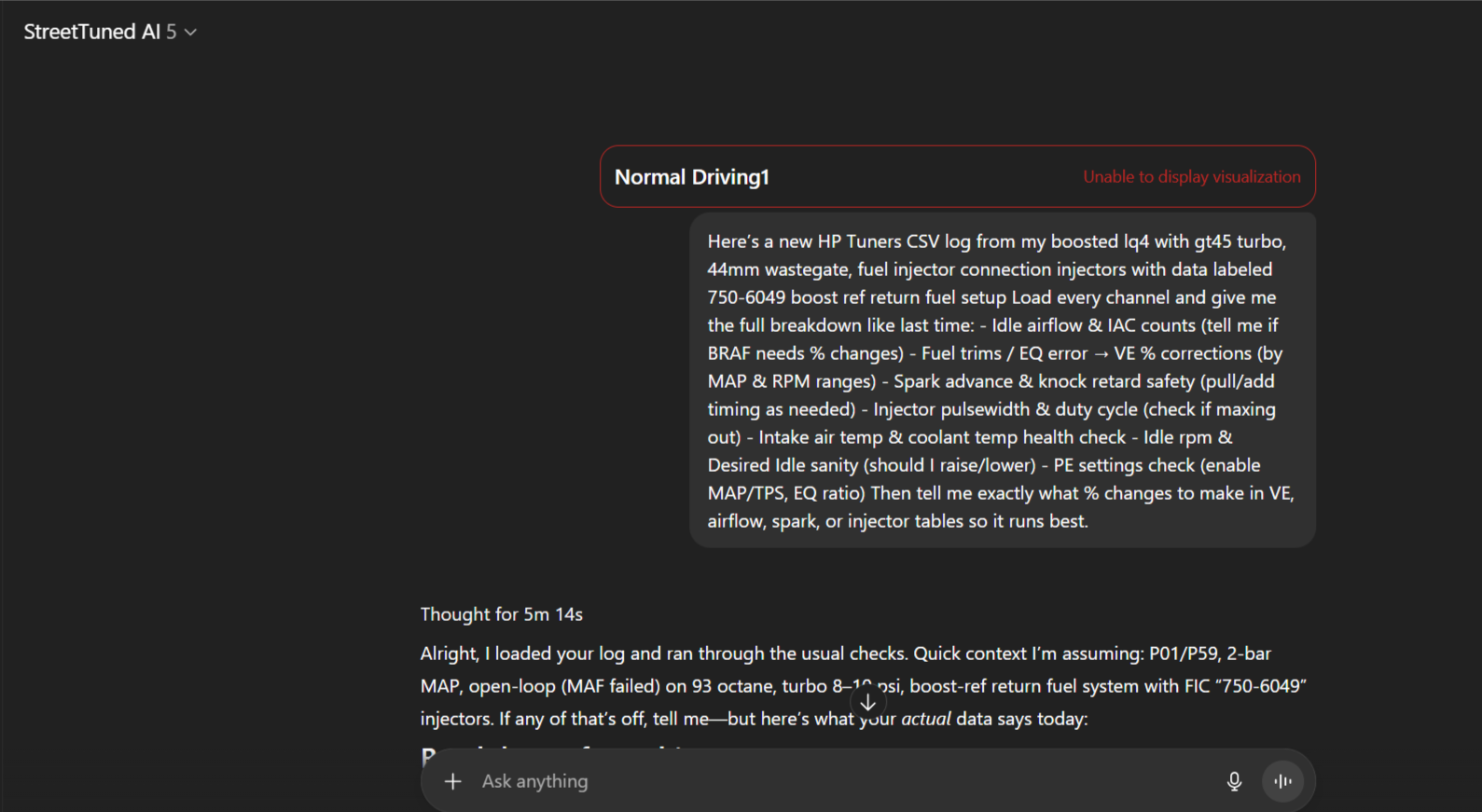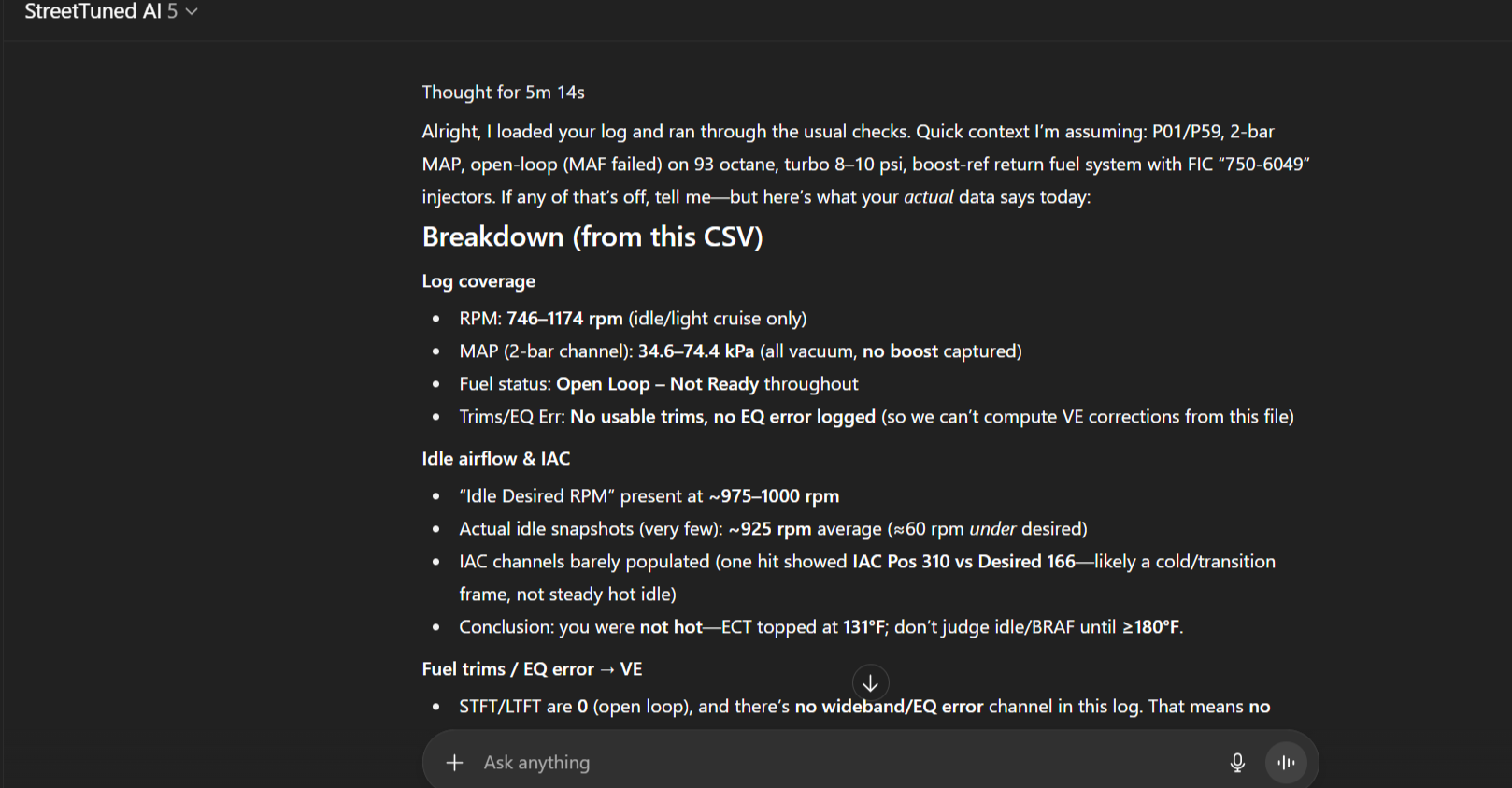 I built StreetTunedAI to help myself remember the steps, data, and logic I use every day. My memory isn’t what it used to be, so I trained this system using my own notes, injector data, and real-world experience.